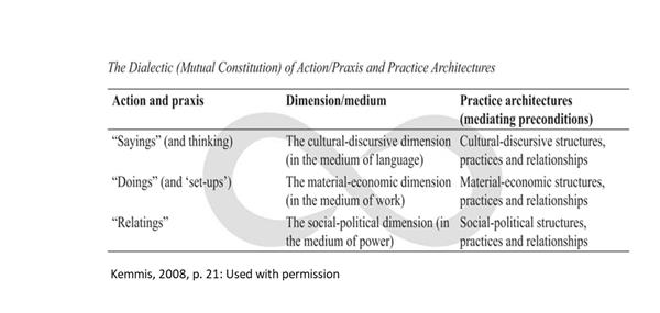 Figure 3. The Dialectic of Action/Praxis and Practice Architectures (used with permission)