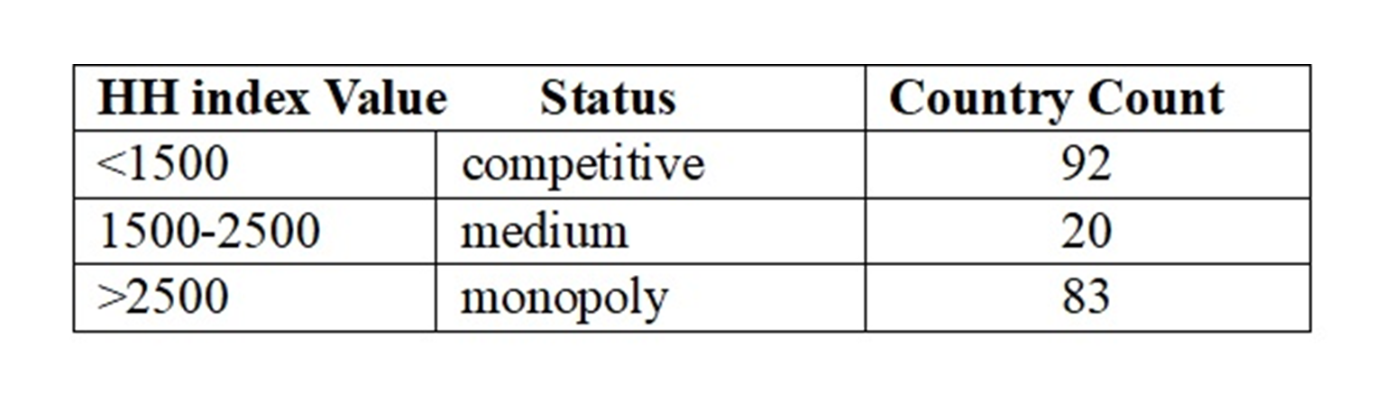 Pavic, I., Galetic, F., & Piplica, D. (2016). Similarities and Differences between the CR and HHI as an Indicator of Market Concentration and Market Power. British Journal of Economics, Management & Trade, 13(1), 1–8. https://doi.org/10.9734/BJEMT/2016/23193