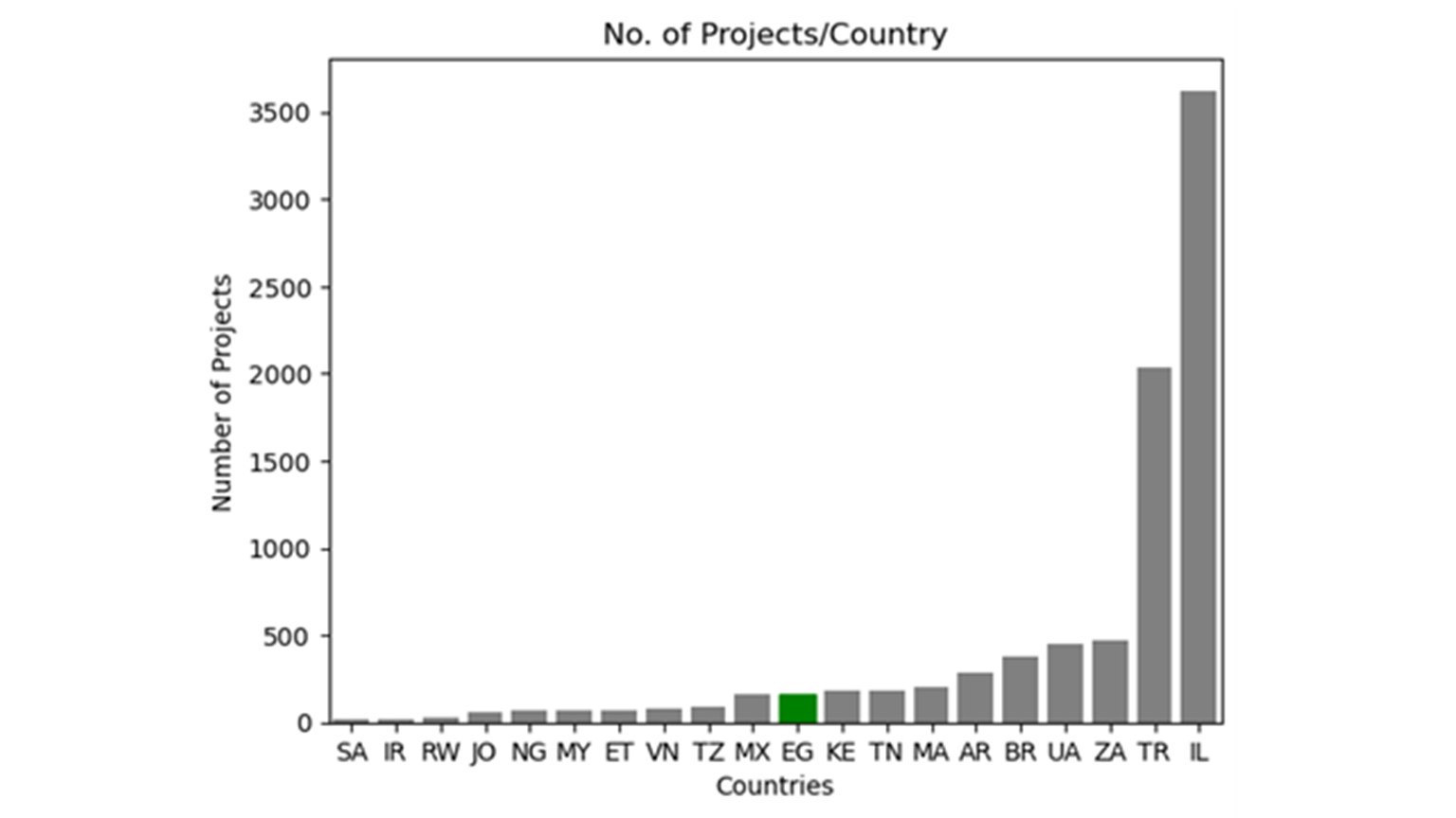 Despite the competitive environment suggested by the HHI calculations, where Egypt demonstrated a balanced distribution of funding and project participation among organizations, the overall low number of approved projects indicates that the country is not fully realizing its potential (Figure 2).