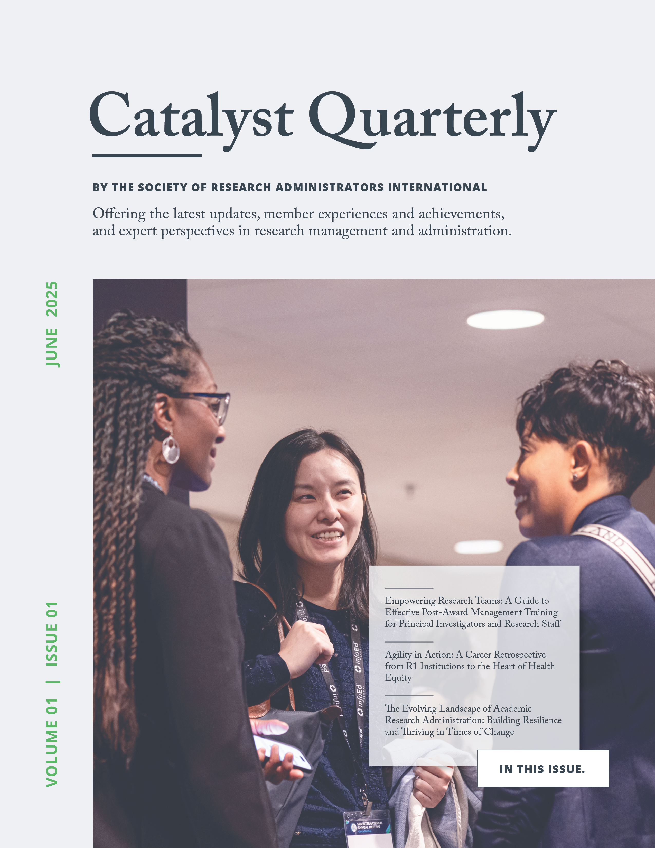 The inaugural issue of Catalyst Quarterly is an outstanding contribution to the SRAI community. It not only elevates the voice and expertise of research administrators worldwide but also showcases the depth, diversity, and forward momentum of our profession. With compelling features ranging from practical post-award training and global collaborations to the evolving workplace and regulatory landscapes, this publication sets a new benchmark for thought leadership, professional development, and community engagement within the field of research administration. It is an inspiring testament to SRAI’s commitment to excellence, inclusion, and innovation.