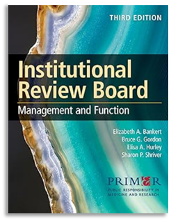Bankert, E. A., Gordon, B.G., Hurley, E. A. & Shriver, S. P. (Eds.). (2022). Institutional review board: Management and function (3rd ed.). Jones & Bartlett Learning.